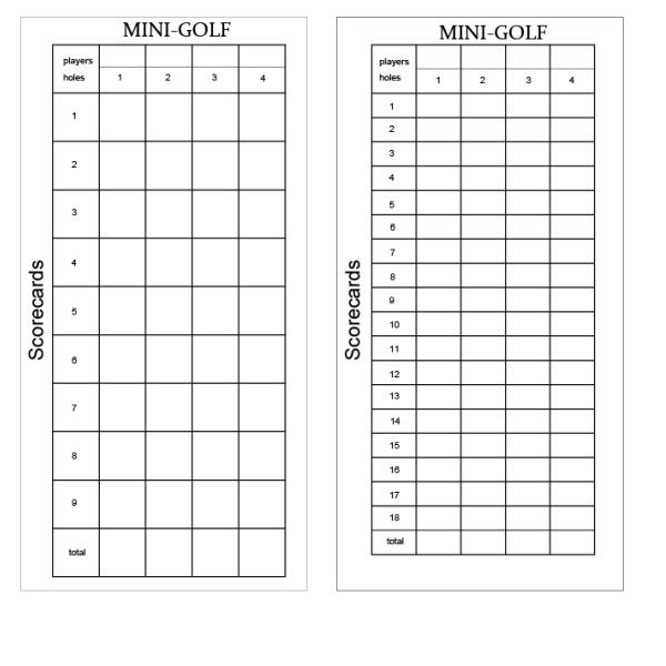 scorecards: you can choose 9 or 18 holes , 4 players on each sheet